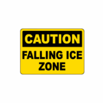 Indicates a zone where falling ice is likely. Ensures pedestrian safety during winter.