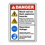 Danger Shock and arc flash explosion hazards Hazardous voltage