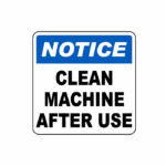 Notice Clean Machine After Use Sign