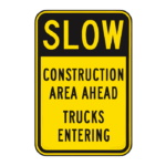 Slow Construction area ahead Trucks entering