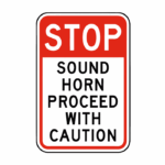 Stop Sound Horn Proceed with Caution Sign